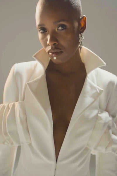 Elevate your wardrobe with this sculptural ensemble—a refined white mid-length jacket in premium scuba, paired with a ga… Read more