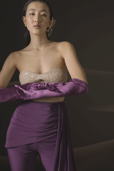 Embellished Corset Jumpsuit with Side Trail in Purple