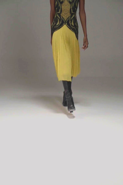 A striking expression of contemporary craftsmanship, this sleeveless pleated dress is rendered in a vivid shade of yello… Read more