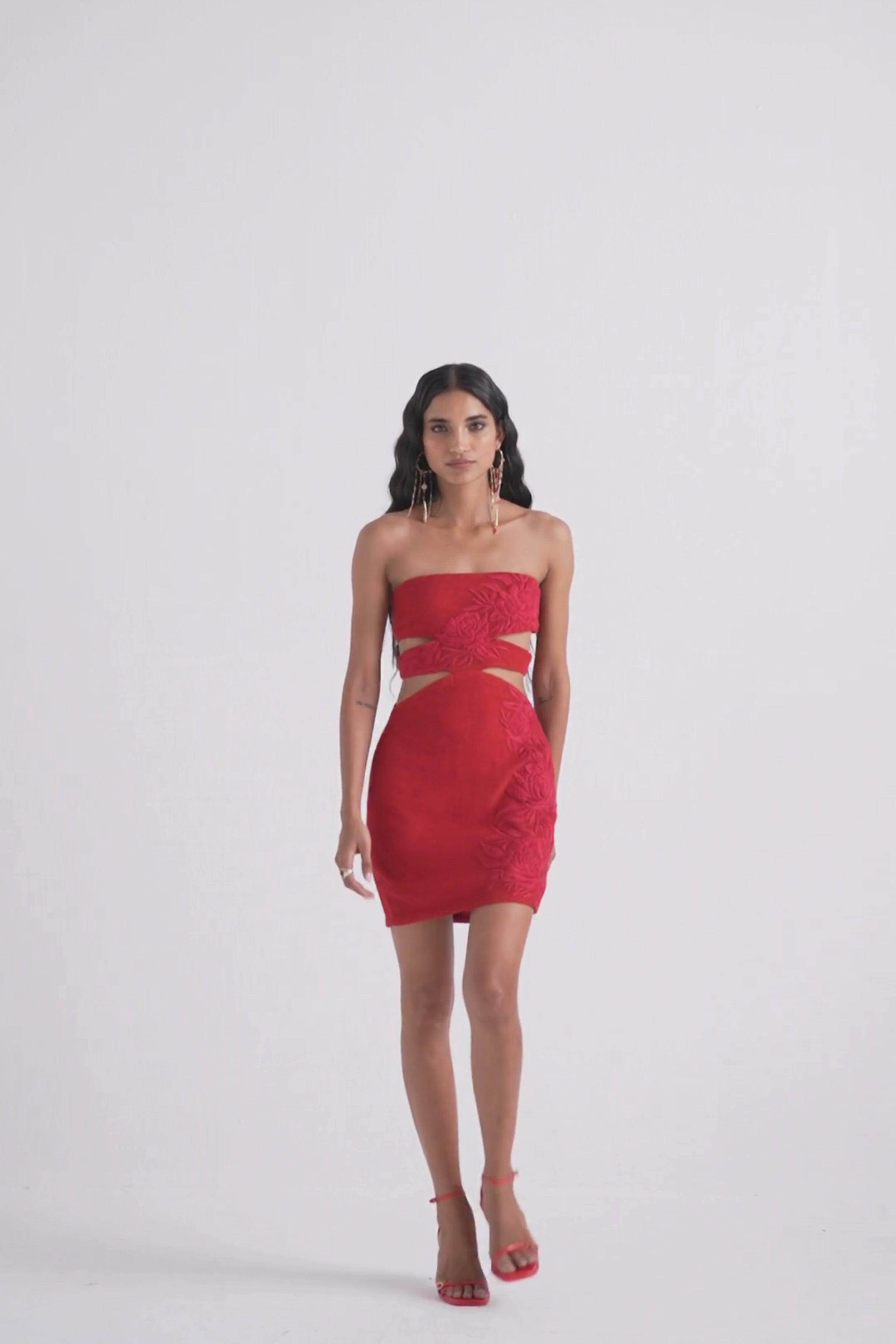 Command attention with the bold allure of this striking red bandeau mini dress, an exquisite fusion of modern sophistica… Read more