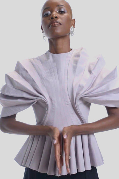 PEPLUM TOP WITH STRUCTURED SLEEVES IN GREY
