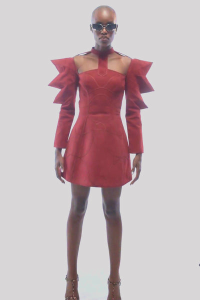 STRUCTURED CHOKER MINI DRESS IN WINE