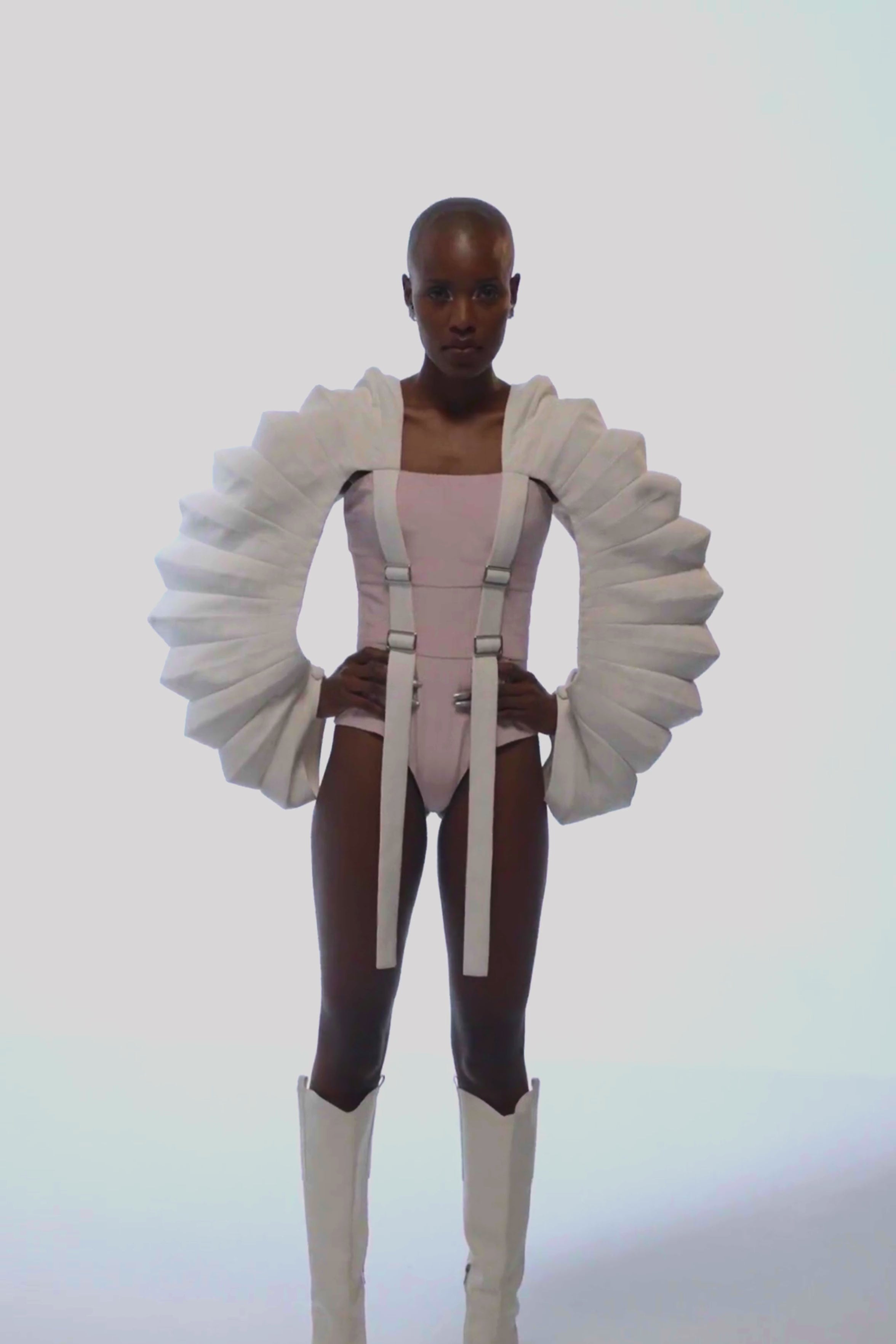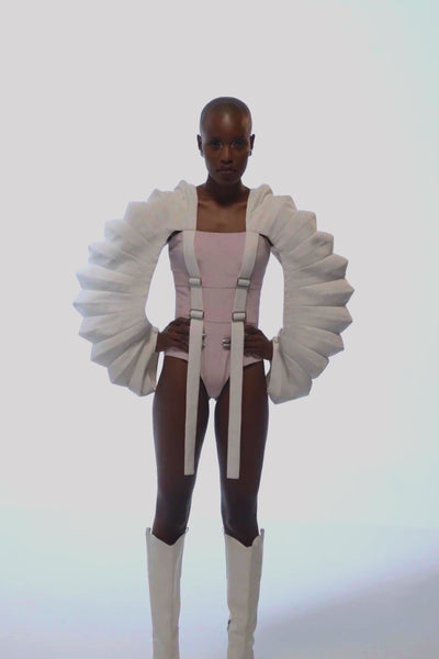 A bold expression of sculptural elegance, this meticulously handcrafted bodysuit is designed to create a striking and un… Read more