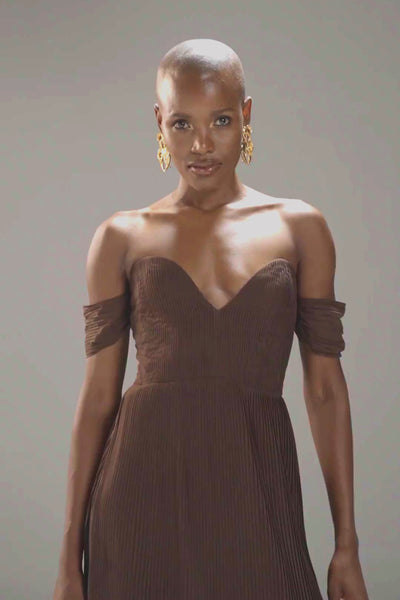 SWEETHEART BANDEAU PLEATED MAXI IN BROWN