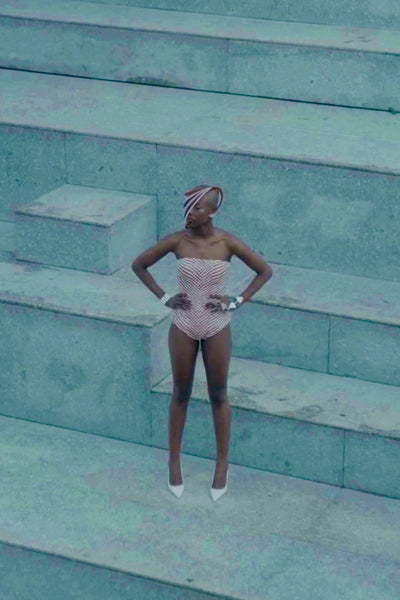An audacious expression of haute couture mastery, this show-stopping creation is where sculptural precision meets untamed artistry. Designed for moments of cinematic grandeur, the piece features a meticulously structured bodysuit, handwoven with radiant raffia threads that trace the contours of the body with bold, textural elegance. A detachable, floor-grazing cape unfurls behind in a dramatic cascade, its luminous raffia detailing capturing the light with every movement—an opulent dance of craft and motion. Fierce yet refined, this look is a celebration of unapologetic power and artisanal brilliance, destined to command attention on the most illustrious of stages.